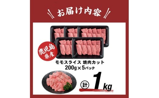 - 【3月発送予定】鹿児島県産黒毛和牛赤身モモ焼肉 (計1kg・200g×5P) a5-340-03