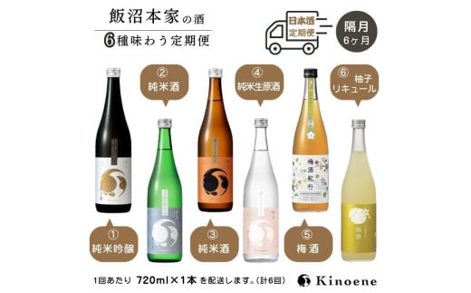 kinoene 日本酒 いろいろ味わう定期便( はなやか / やわらか / うまから / 純米生原酒 / 梅酒 / 柚子酒 )を順にお届け 720ml 瓶 甲子 日本酒 / 日本酒リキュール 飲み比べ 定期便[隔月6ヶ月]ひと月1本隔月でお届け 合計6本