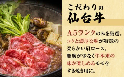 牛肉 仙台牛 すき焼き用 合計 700g 赤身 食べ比べ 2種セット 冷蔵 肩ロース モモ肉 もも肉 牛モモ 和牛 A5 B5 国産牛 焼肉 鍋 すき焼き鍋 BBQ アウトドア キャンプ 詰め合わせ セット ギフト 贈り物 お祝い 贈答品 石巻 宮城県 石巻市
