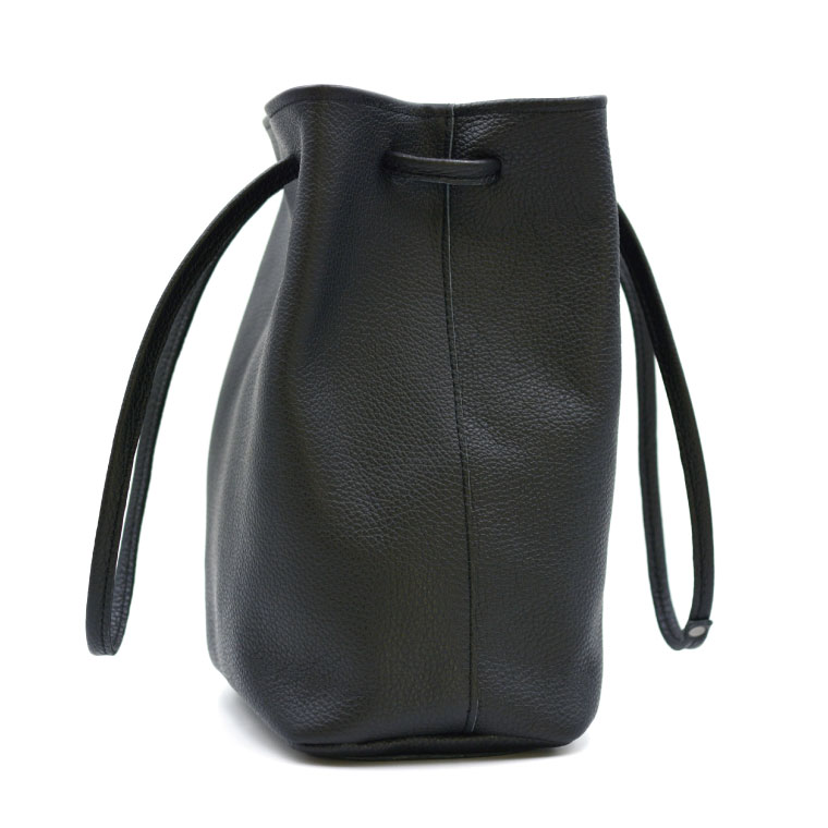 【ふるさと納税】益子の革工房maharoの巾着バッグ(M)ブラック(AX140-3)