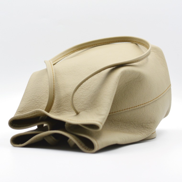 - 益子の革工房maharoの巾着バッグ(M)ベージュ (AX140-4)