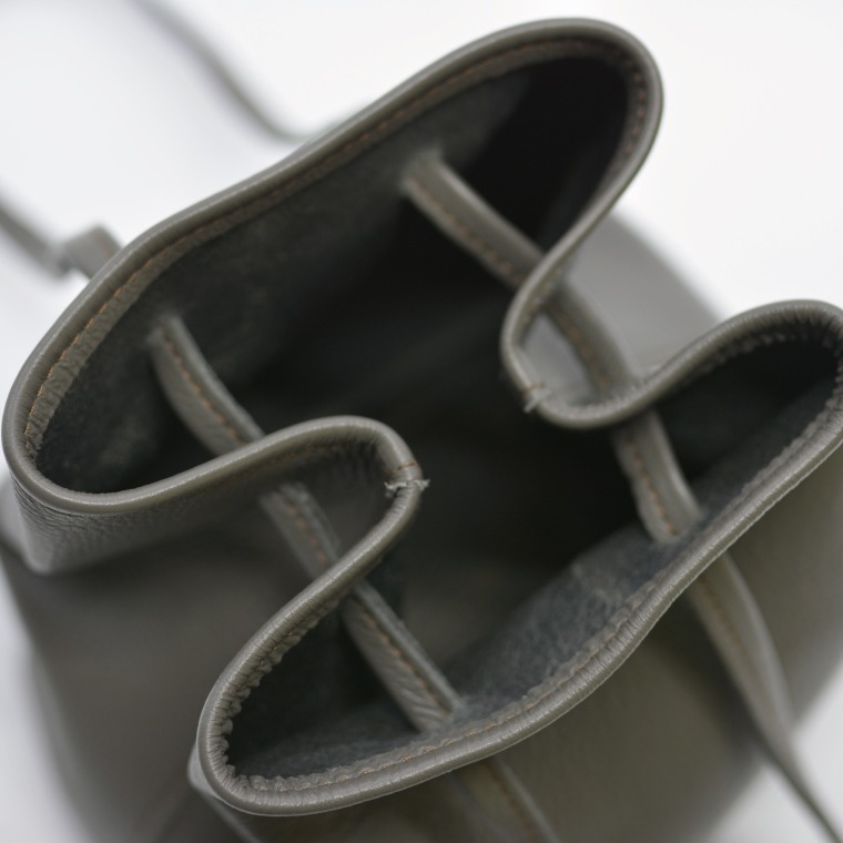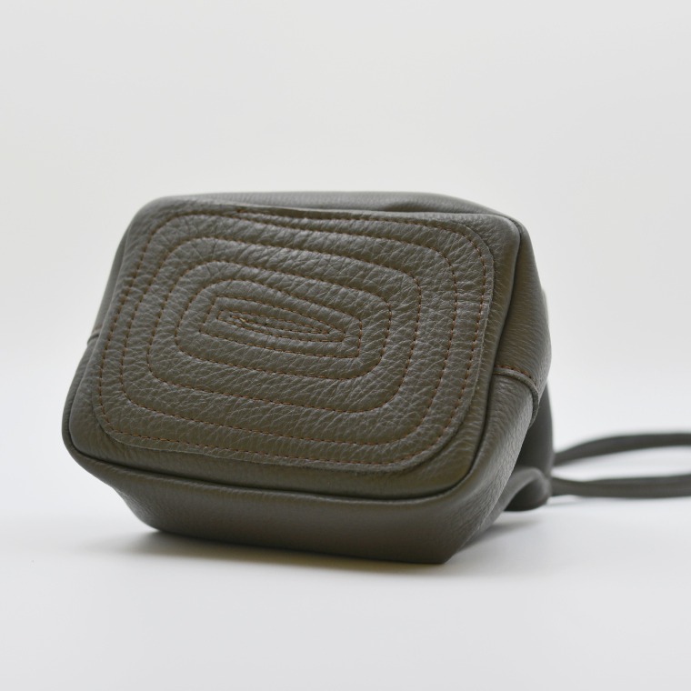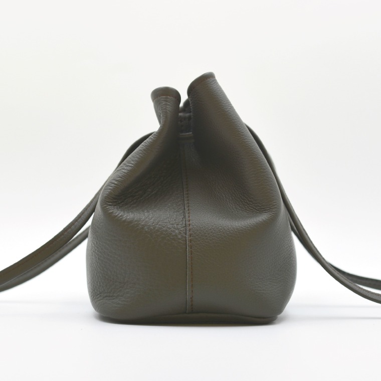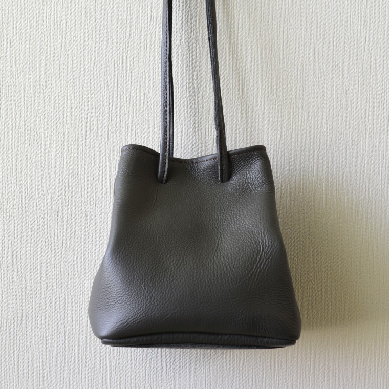 - 益子の革工房maharoの巾着バッグ(S)ダークグレー (AX141-2)