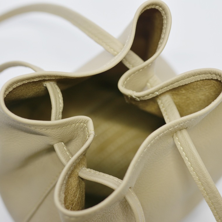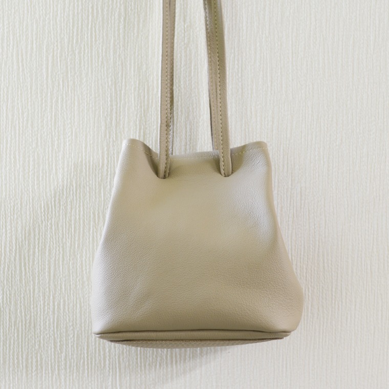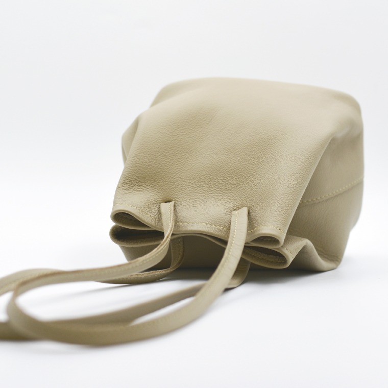 - 益子の革工房maharoの巾着バッグ(S)ベージュ (AX141-4)