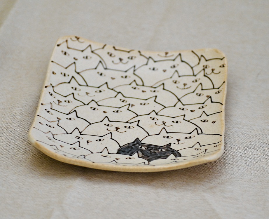- ネコいっぱい角皿(大)【716】_HA0978
