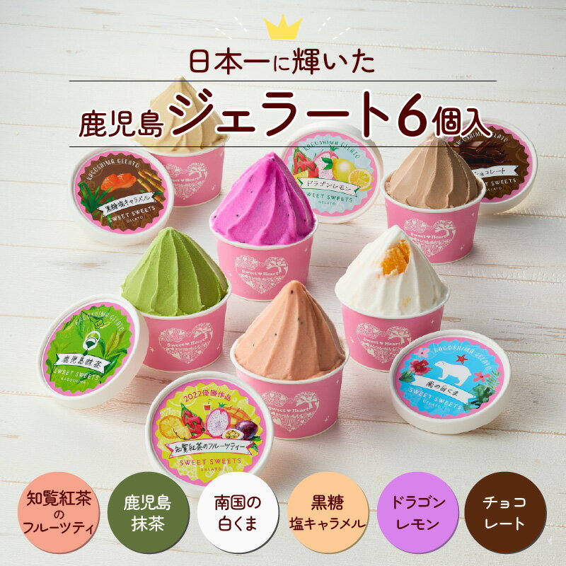 【ふるさと納税】日本一のジェラート 鹿児島 ジェラート 6個入り 日本一 ジェラートマエストロコンテスト 優勝 アイス ジェラート 菓子 スイーツ マンゴー フルーツ キャラメル チョコレート 抹茶 セット スイートスイーツ 鹿児島 おすすめ ランキング プレゼント ギフト