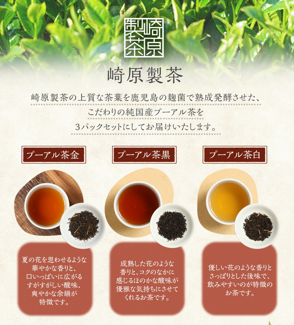 【ふるさと納税】【種類が選べる!】STプーアル茶 3パックセット(プーアル茶 3種 / プーアル茶 白 3袋 / プーアル茶 黒 3袋 / プーアル茶 金 3袋)プーアル お茶 茶 飲料 ティーバッグ 常温 鹿児島県 薩摩川内市 送料無料