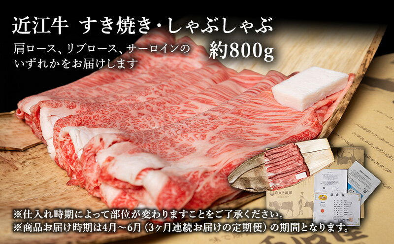 【ふるさと納税】【肉の千石屋】【定期便:4~6月お届け】3ヶ月連続お届け近江牛A5ランクすき焼き しゃぶしゃぶ約800g お届け:2026年4月~2026年6月