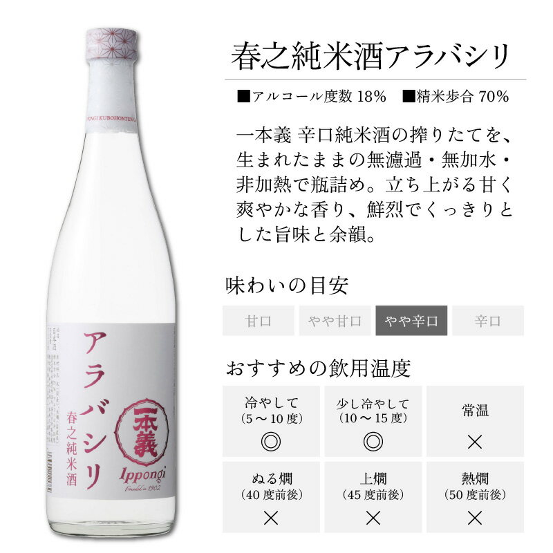 - 【ふるさと納税】【期間限定】一本義 春之純米酒アラバシリ 無濾過生酒(720ml×1本) / 日本酒 辛口純米酒 酒 お酒 ギフト おすすめ 送料無料 北陸 福井県 勝山市