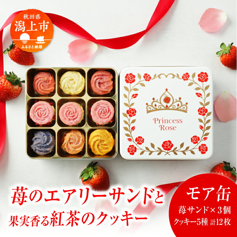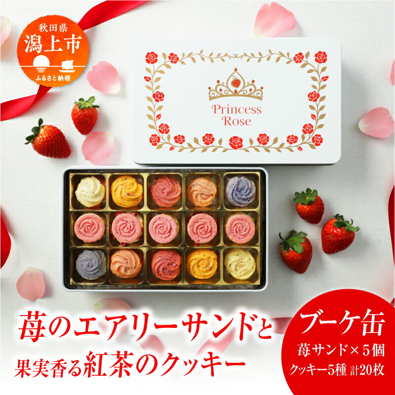 【ふるさと納税】プリンセス ローズ ~苺のエアリーサンド~ モア缶 ブーケ缶 エアリーサンド フルーツクッキー 焼き菓子 詰め合わせ 秋田県産 いちご サキホコレ 米粉 クッキー サンド スイーツ お菓子 洋菓子 フルーツ ギフト 贈り物 潟上市【パティスリー・パルテール】