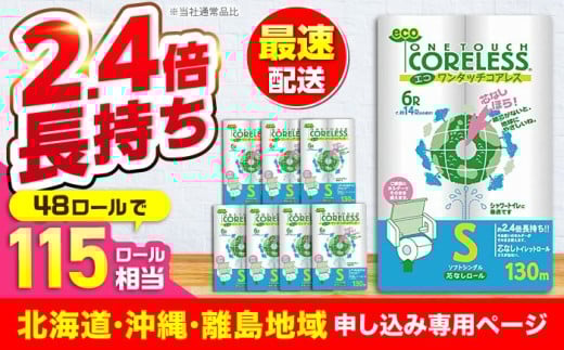 - 【北海道・沖縄・離島用】長持ち! トイレットペーパー シングル 長巻き 130m 6ロール×8パック エコ ワンタッチ コアレス《豊前市》【大分製紙】 [VAA091] 再生紙 備蓄 防災 まとめ買い 日用品 備蓄 といれっとぺーぱー 消耗品 常備品 おすすめ 人気 ランキング トイレットペーパー シングル 大容量 トイレ コスパ といれっとぺーぱー九州 福岡豊前市
