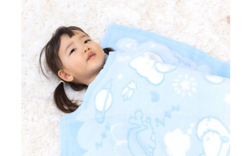クリ衿 ベビー綿毛布(毛羽部分) 宇宙柄 ブルー 85×115cm 毛布の町泉大津市産 | ベビー毛布 ベビーブランケット 毛布 ブランケット おくるみ 綿毛布 赤ちゃん毛布 綿100% 洗える 寝具 赤ちゃん キッズ N-MJK500 [3348]