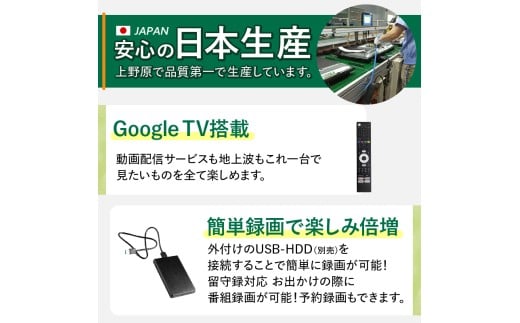 - 【最短4日発送】 テレビ 32型 Google TV 液晶テレビ 日本製 国内生産 ハイビジョン 壁掛け可能 AP325GL 32V セカンドテレビ 子ども用 寝室用 VESA対応 家電 電化製品 32インチ 法人用 会議室 ホテル 学校 病院 デジタルサイネージ 地デジ BS CS 送料無料 山梨県上野原市