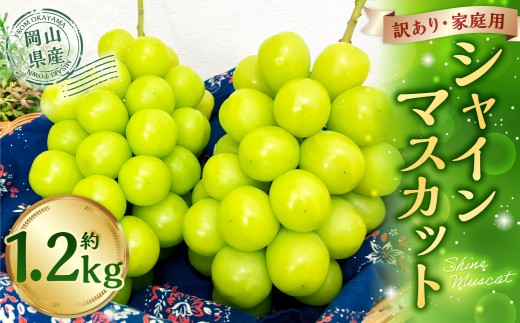 - 訳あり 家庭用 シャインマスカット 600g以上 2房入り 1.2kg以上 マスカット ぶどう ブドウ 葡萄 グレープ フルーツ 果物 デザート おやつ 種なし 皮ごと 旬 岡山県 美咲町 【2026年9月上旬から10月上旬頃発送予定】