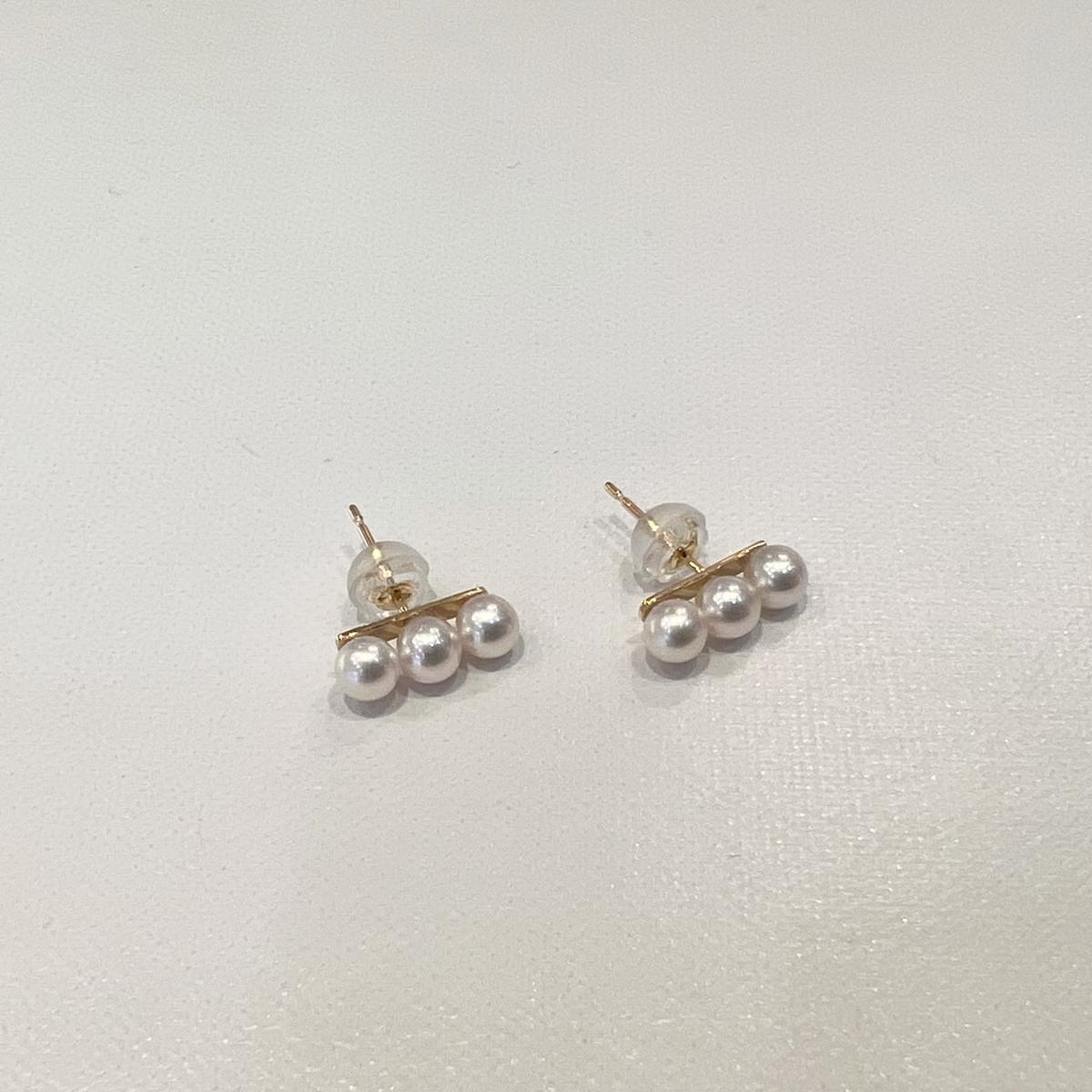 - 80-08あこや真珠ベビーパール3連ピアス