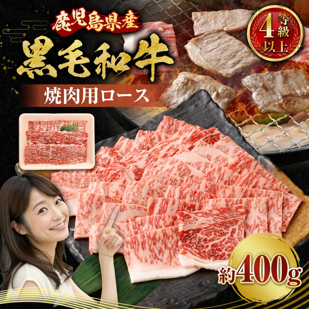 - 【ふるさと納税】 【鹿児島県産】 黒毛和牛 焼肉用ロース 400g 4等級以上 焼肉 焼き肉 牛肉 ロース 冷凍 国産 国産牛 焼肉用 肉 にく お肉 和牛 鹿児島県 薩摩川内市 送料無料 AS-8125