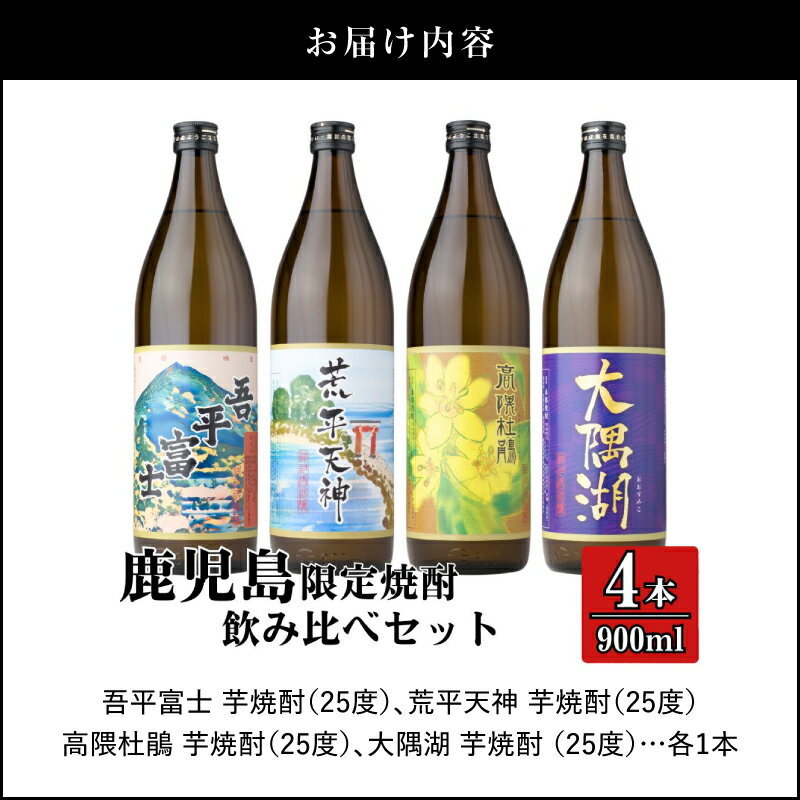 - 【ふるさと納税】【超特急便】【お急ぎ便】【鹿児島限定】三浦屋オリジナル 芋焼酎 飲み比べセット 25度 計3.6L 900ml 4本 神川酒造 吾平富士 荒平天神 高隈杜鵑 大隅湖 酒 焼酎 飲料 飲み比べ セット 三浦屋 鹿児島 鹿屋市 おすすめ ランキング プレゼント
