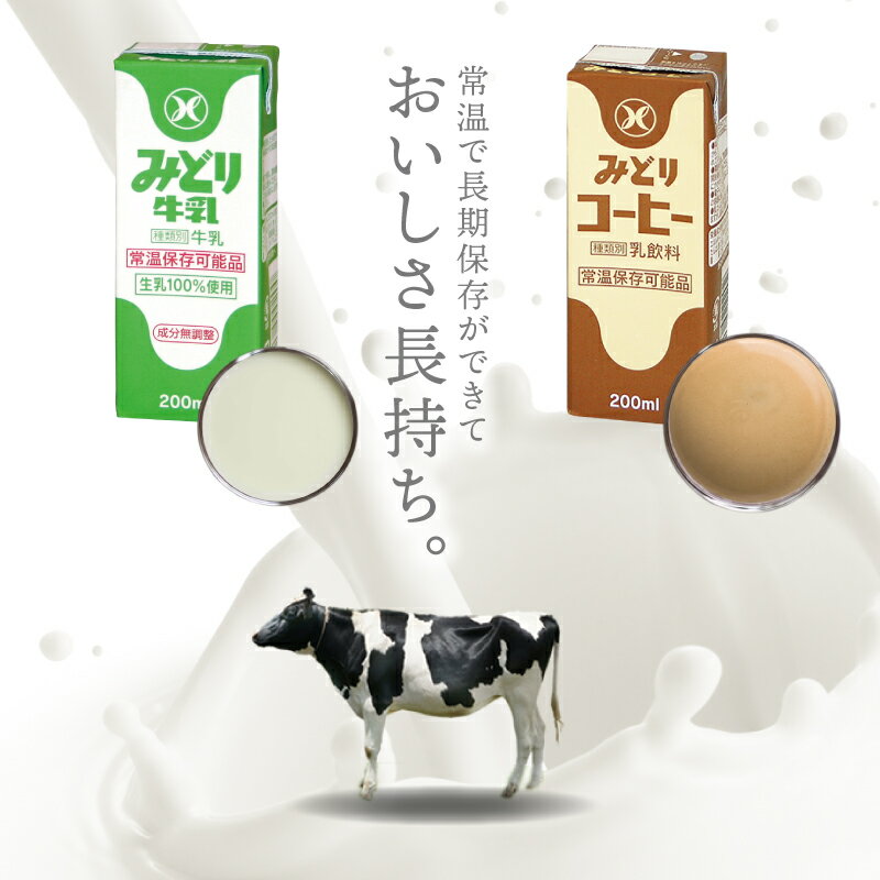 【ふるさと納税】みどり牛乳とみどりコーヒーセット 200ml×48本 紙パック 九州乳業 生乳100% 乳飲料 飲み物 ミルクコーヒー コーヒー牛乳 珈琲 ロングライフ お出かけ 詰め合わせ 学校給食 常温保存可能 送料無料 九州産 新鮮 ミルク 酪農 ストック 保存 キャンプ I07001