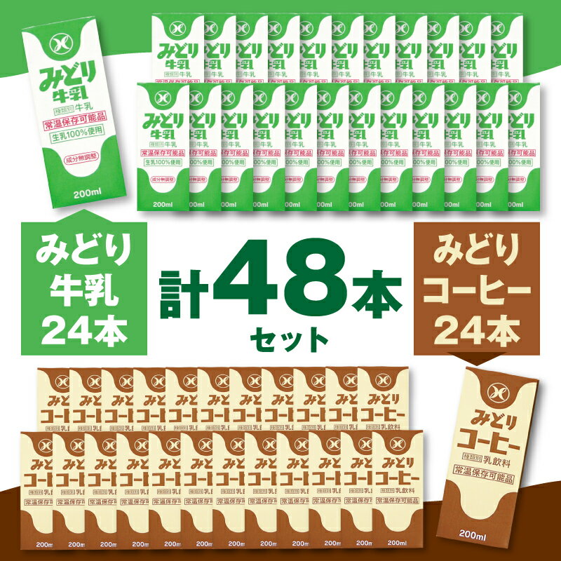 - 【ふるさと納税】みどり牛乳とみどりコーヒーセット 200ml×48本 紙パック 九州乳業 生乳100% 乳飲料 飲み物 ミルクコーヒー コーヒー牛乳 珈琲 ロングライフ お出かけ 詰め合わせ 学校給食 常温保存可能 送料無料 九州産 新鮮 ミルク 酪農 ストック 保存 キャンプ I07001