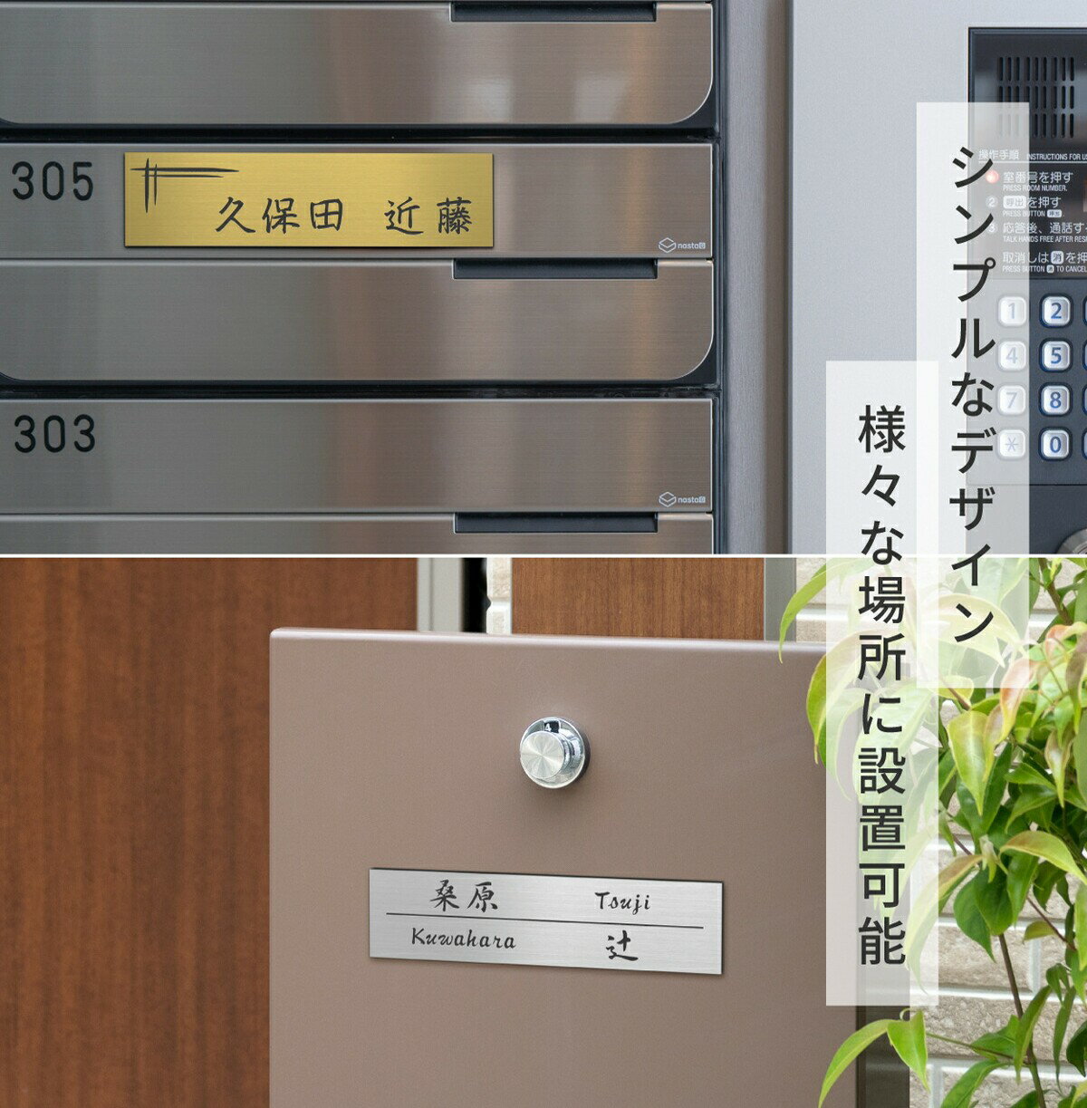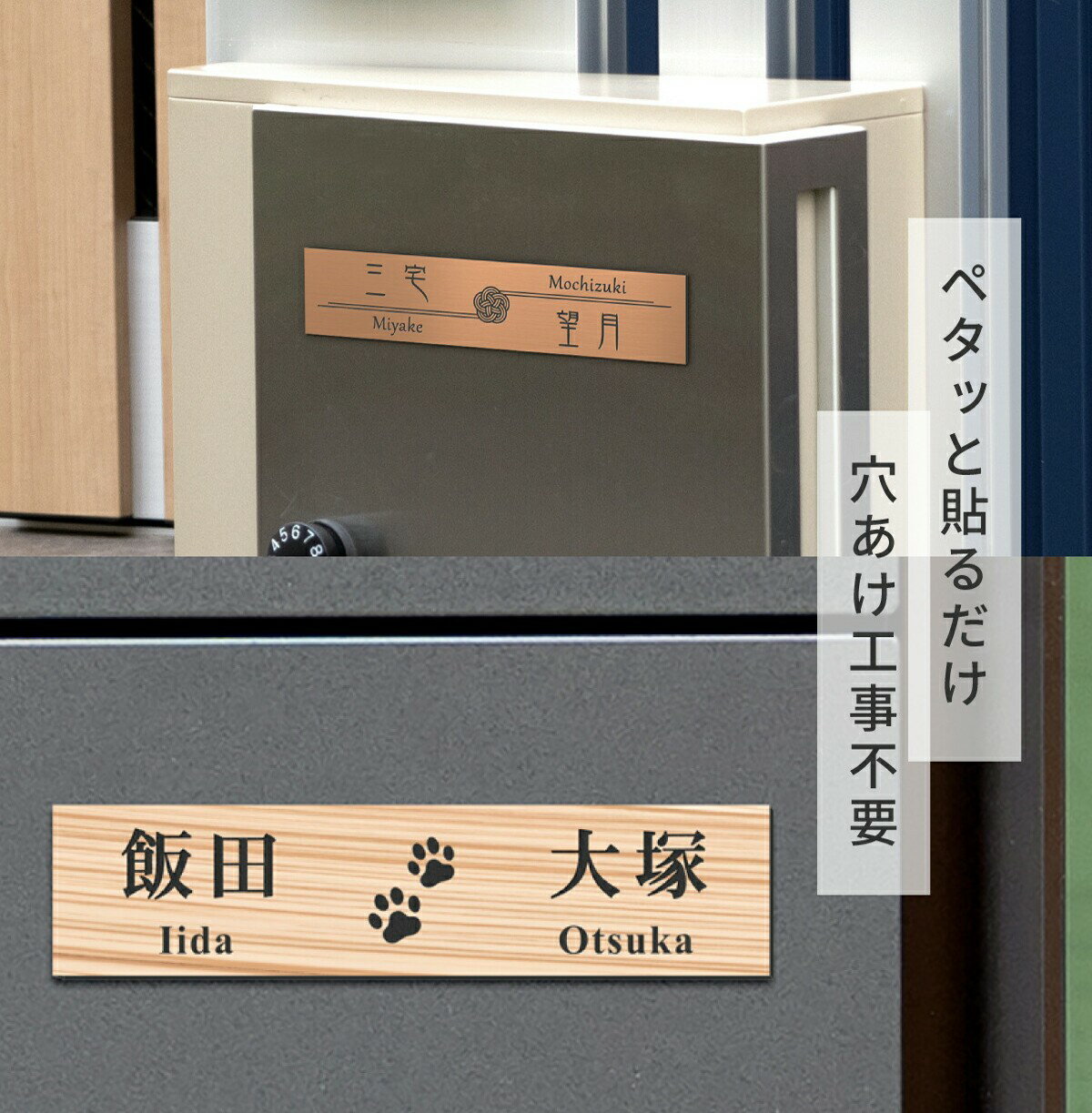 - 【ふるさと納税】表札 二世帯 S-L シルバー ゴールド ブロンズ 木目調 ステンレス調 真鍮風 銅板風 パートナー 2世帯住宅 同居 旧姓 オシャレ ネームプレート マンション ポスト 門柱 外壁 屋外 日本製 シール式 メール便 送料無料