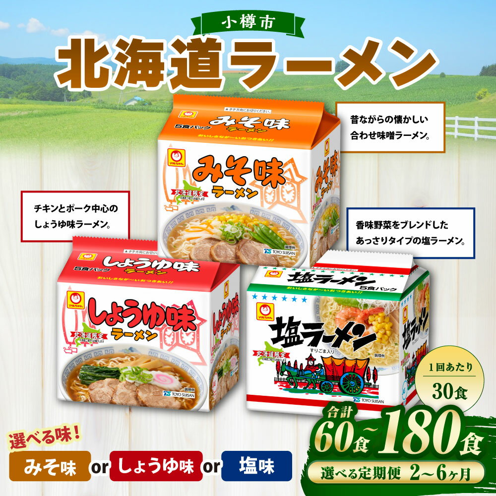 - 【ふるさと納税】【味・回数が選べる定期便】北海道 ラーメン 2~6回 60食~180食 醤油ラーメン ラーメン 味噌ラーメン 塩ラーメン 麺 麺類 ラーメン 醤油味 味噌味 塩味 ご当地ラーメン お取り寄せ 生麺 乾麺 小樽市 北海道 送料無料