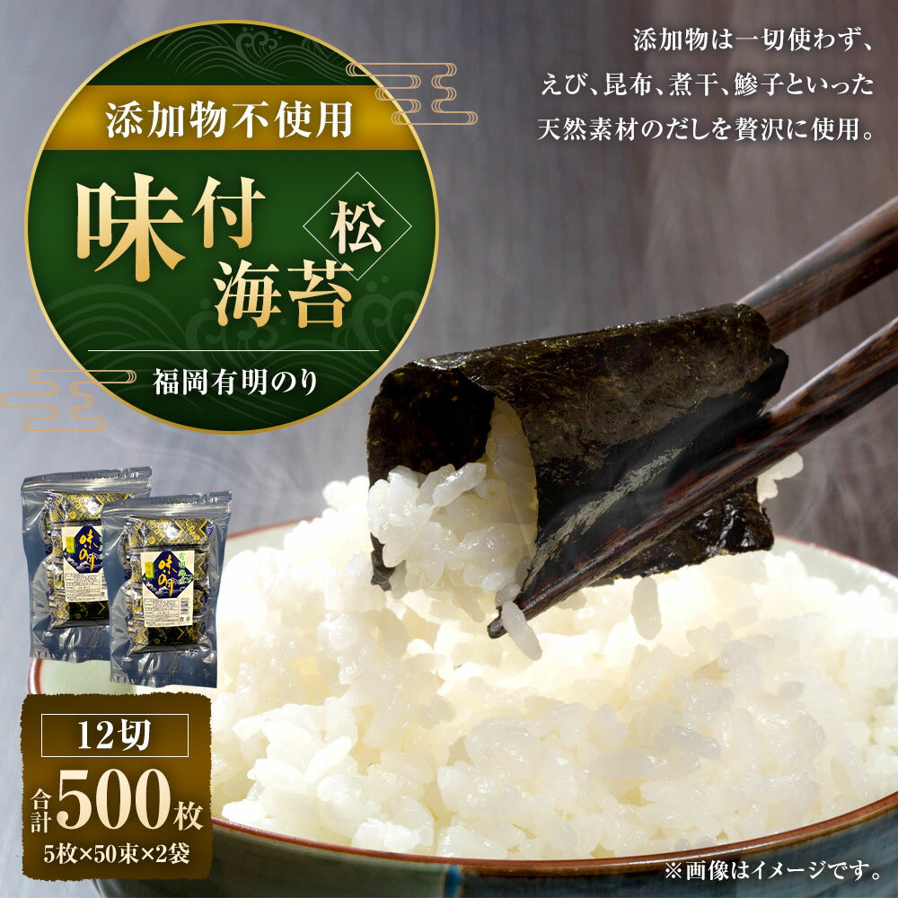 - 【ふるさと納税】【松】味付 海苔 12切り (5枚×50束×2袋) 計500枚 福岡有明のり 添加物不使用 のり あじのり ごはんのお供 おにぎり おやつ おつまみ 手巻き寿司 朝ごはん 有明海産 福岡県 大任町 送料無料