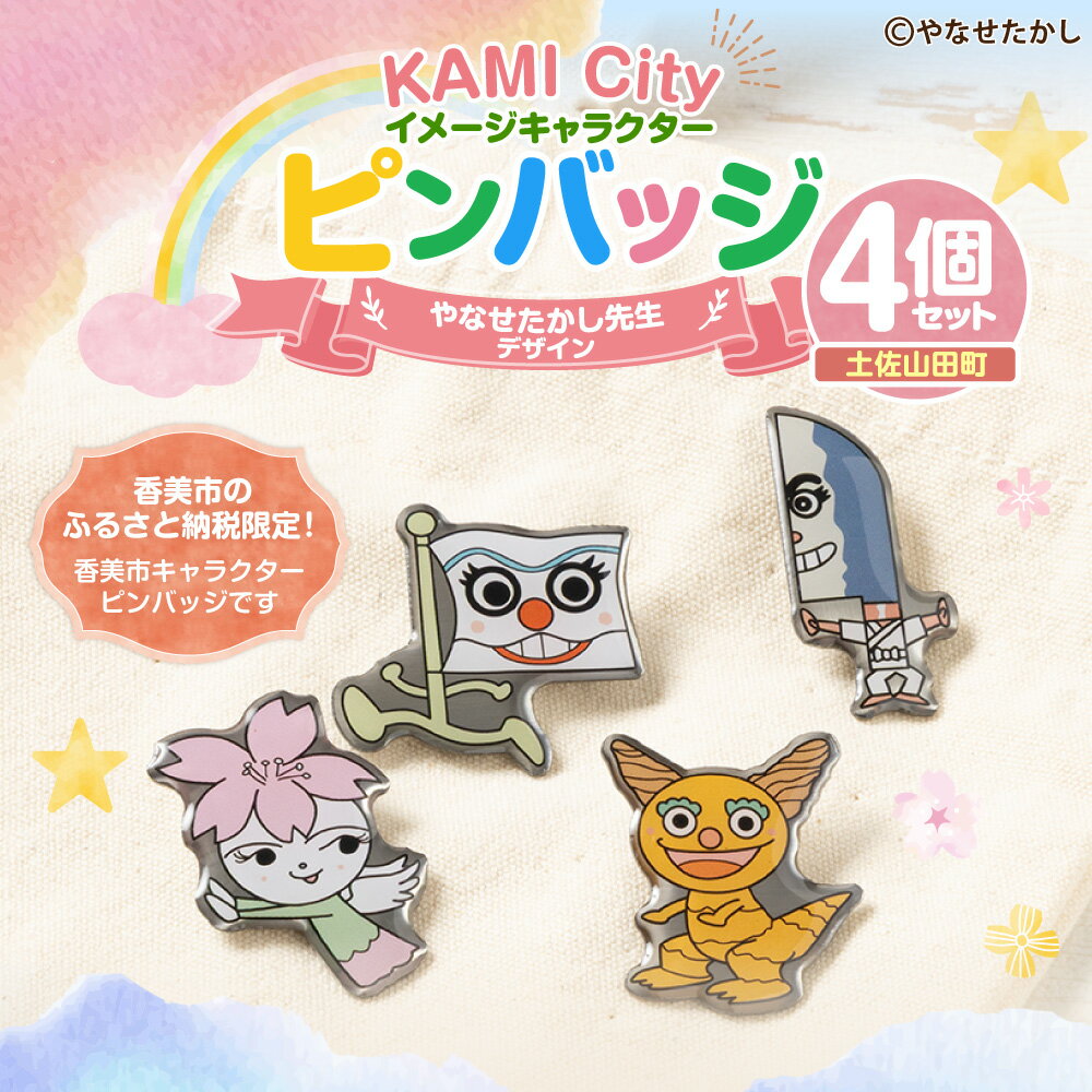 - 【ふるさと納税】香美市イメージキャラクターピンバッジ (土佐山田町4種セット) ピンバッジ バッジ やなせたかし先生デザイン やなせたかし イメージキャラクター 香美市限定品 ふるさと納税限定品 高知県 香美市 送料無料