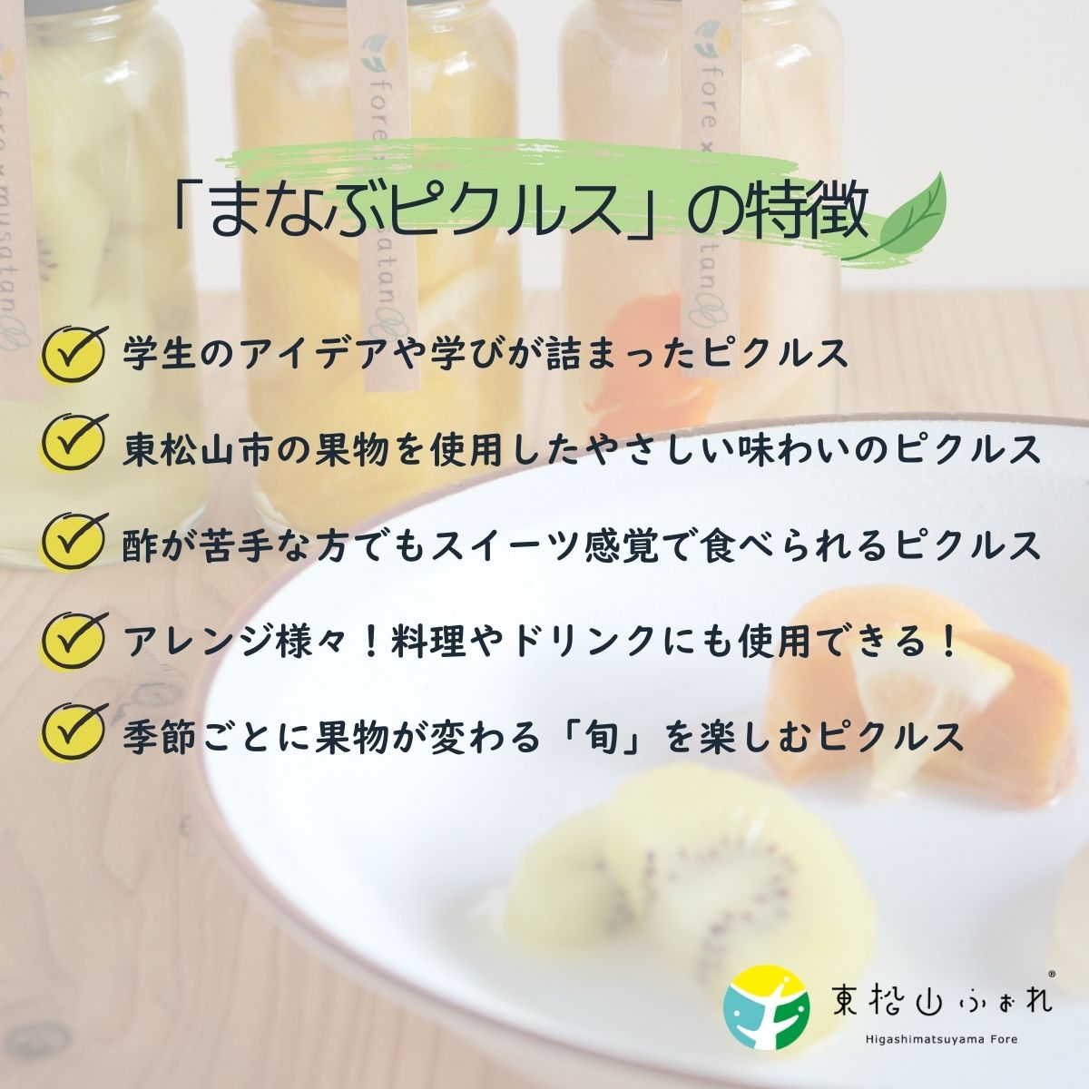 - 【ふるさと納税】東松山市産 まなぶピクルス 3種 | ピクルス 減農薬 キウイ 柿 梨 酢 季節 管理栄養士 まなぶピクルス 果物 魅力 スイーツ感覚 産学官連携協定 監修 アレンジ 料理 ドリンク オリジナルレシピ お歳暮 ギフト 武蔵丘短期大学 東松山ふぉれ 埼玉県 東松山市