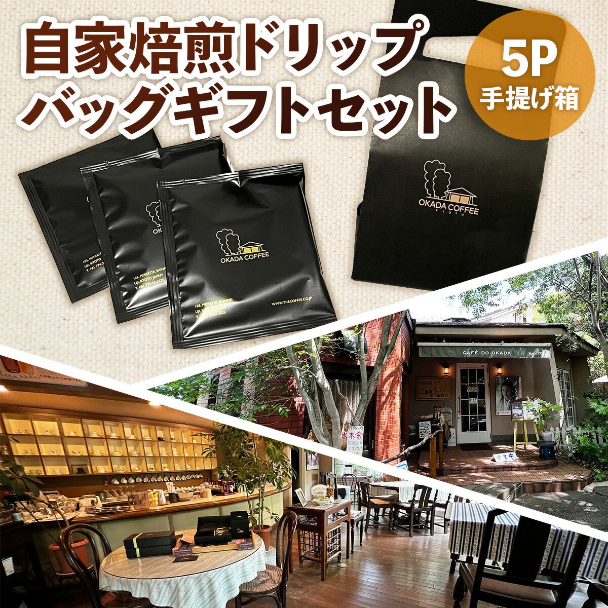 【ふるさと納税】自家焙煎ドリップバッグギフトセット(10g×5袋/手提げ箱) コーヒー ドリップ ギフト 贈答 珈琲 自家焙煎 挽きたて ブラジル ホンジュラス ペルー 【uj-DS001】【京都 岡田珈琲店】