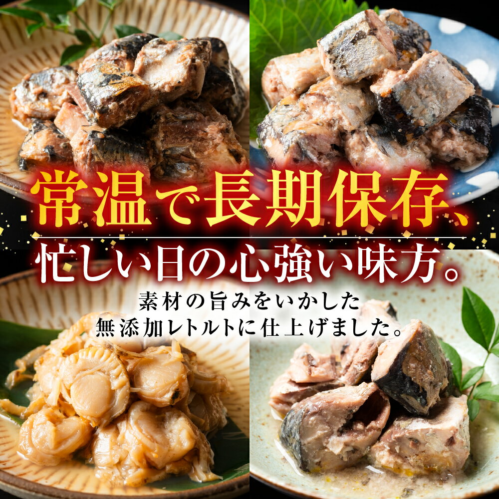 - 【ふるさと納税】 無添加煮付けレトルトセット ( さんま・いわし・ほたて・さば・ほっけ ) ホタテ 帆立 帆立貝柱 ほたて貝柱 ホタテ貝柱 貝柱 秋刀魚 サンマ お取り寄せ グルメ 海鮮 サバ 鯖 鰯 イワシ ホッケ 北海道 根室市 D-09023