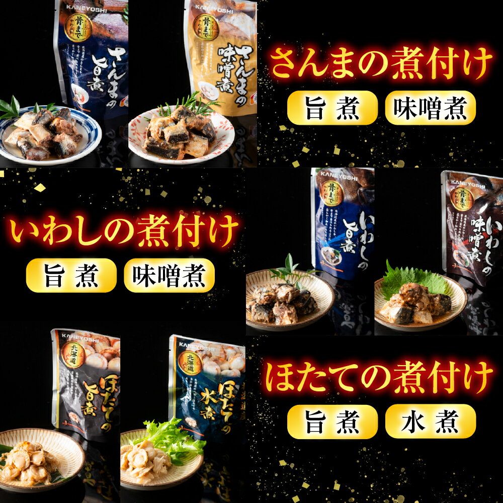【ふるさと納税】 無添加煮付けレトルトセット ( さんま・いわし・ほたて・さば・ほっけ ) ホタテ 帆立 帆立貝柱 ほたて貝柱 ホタテ貝柱 貝柱 秋刀魚 サンマ お取り寄せ グルメ 海鮮 サバ 鯖 鰯 イワシ ホッケ 北海道 根室市 D-09023