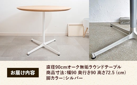 - 直径90cmオーク無垢ラウンドテーブル 脚カラーシルバー【木製 テーブル オーク 円形 一本脚 無垢材 温かみ 国産 シンプル おしゃれ 受注生産 家具 インテリア 島根県 安来市】【270-AW-07-2】