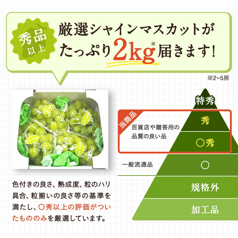 【2026年発送】山形のぶどう(シャインマスカット)約2kg(2~5房)_H063(R8)