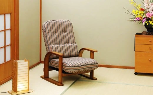 - 和室にも洋室にも相性が良くリクライニング機能を備えた肘付き高座椅子 / 日本製 クッション 簡単 広島県 No.960