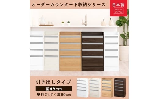 【完成品+設置付き】オーダーカウンター下収納 引き出しタイプ・幅45cm (ホワイトウッド)カウンター下収納 薄型 チェスト ロータイプ 収納 コンパクト 引き出し キッチンラック カウンター下 木製 KKONRA945106-0-WWO