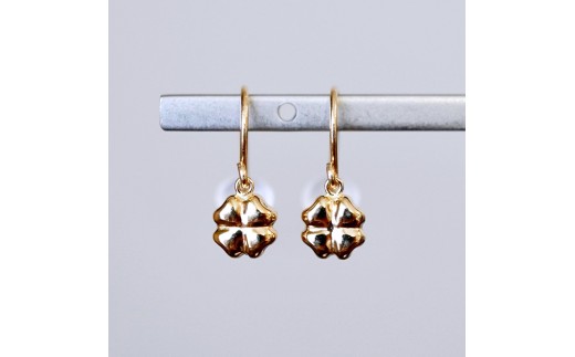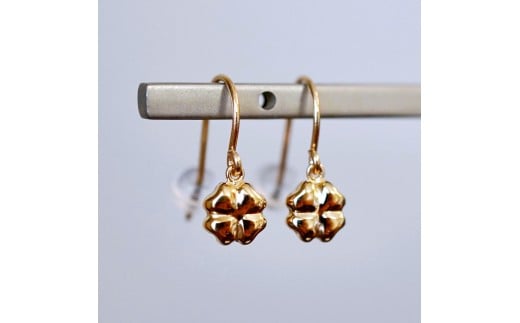 - K18(18金) イエローゴールド 地金 クローバー ピアス フックタイプ シンプル 幸運 希望 幸福 愛情 健康 保証書付 KO-0069 242-027-a