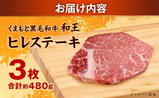 くまもと 黒毛和牛 和王 ヒレ ステーキ 約480g(約160g×3枚)【菊池地域農業協同組合】ステーキ ヒレ 和牛 国産 牛肉 黒毛和牛 熊本県 合志市 [AYBR020]