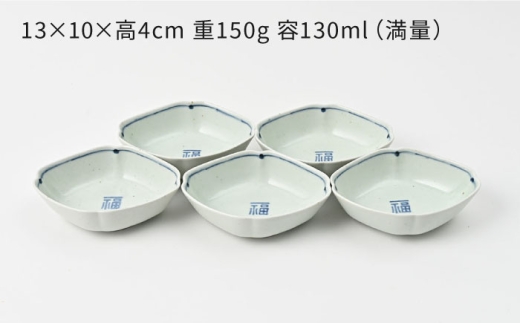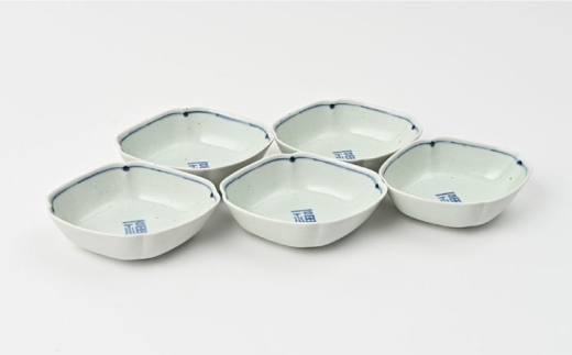【大感謝祭対象】【波佐見焼】福紋 ひし形小鉢 染付 5点 縁起がよい小鉢【福田陶器店】 [PA384]
