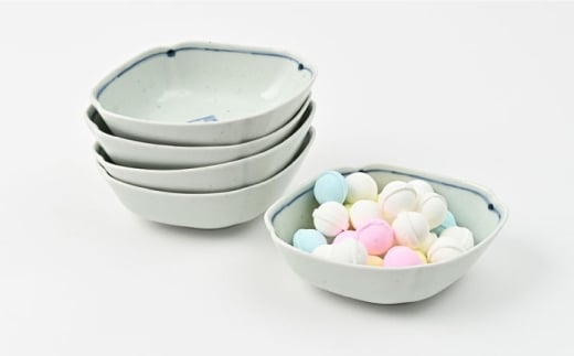 - 【大感謝祭対象】【波佐見焼】福紋 ひし形小鉢 染付 5点 縁起がよい小鉢【福田陶器店】 [PA384]
