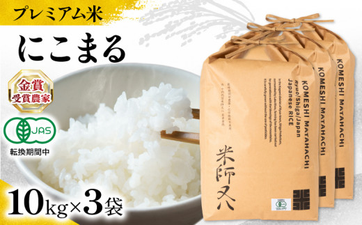 【 プレミアム米 】 米 にこまる 10kg × 3袋 有機JAS認証米 転換期間中 ( 令和7年産 ブランド 米 rice ご飯 内祝い もちもち 国産 送料無料 滋賀県 竜王 ふるさと納税 )