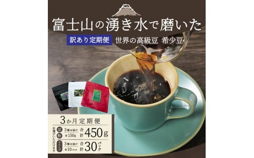 - 【訳あり】【定期便】コーヒー 世界の高級豆 希少豆 3ヶ月コース(豆・粉・ドリップ) コーヒー豆 スペシャルティコーヒー 珈琲 豆 粉 ドリップ ブレンドコーヒー マイルドブレンドコーヒー 訳ありコーヒー 定期便 山梨 富士吉田