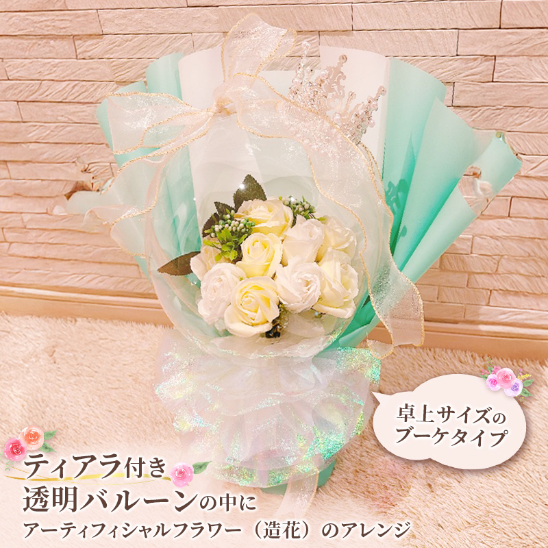 バルーンフラワー ブーケタイプ ティアラ付 メッセージ 【Congratulations】 アーティフィシャルフラワー インテリア 飾り ギフト プレゼント フラワー 造花 花 お花 ブーケ フラワーアレンジメント お祝い 三重県 名張市