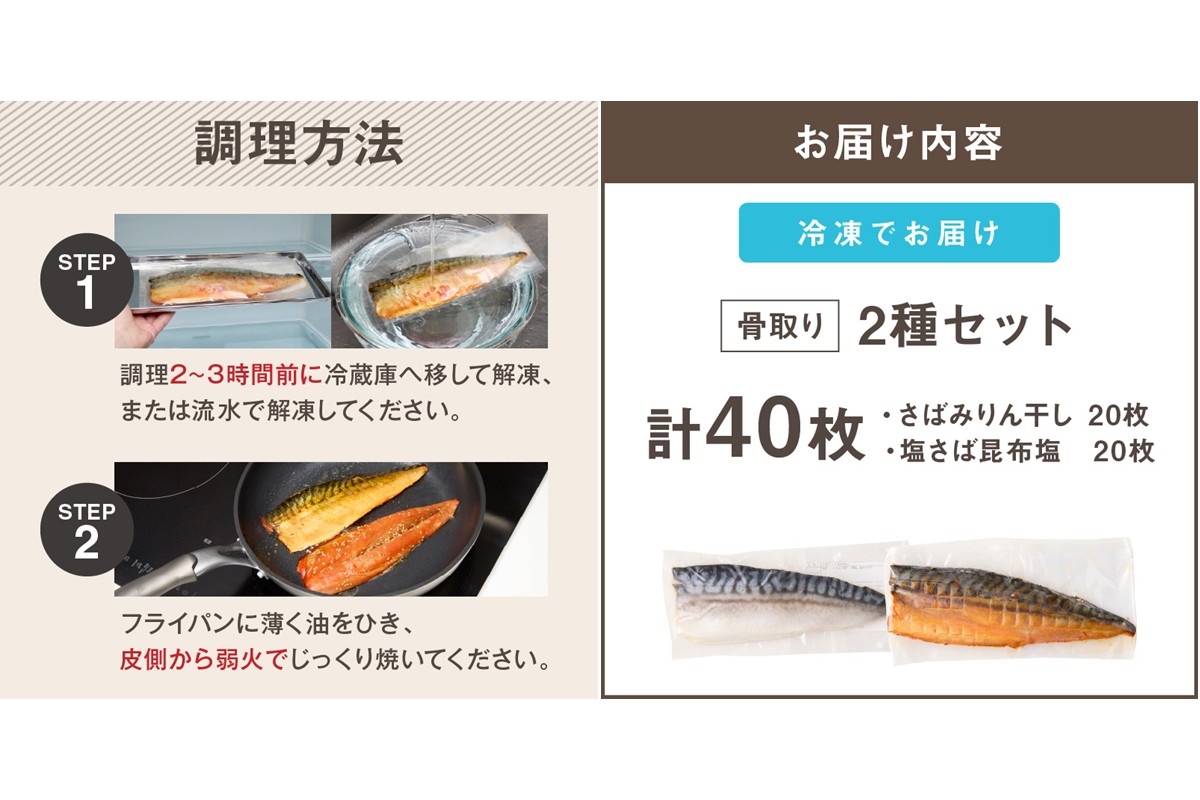 【H-011】骨取りさば40枚(さばみりん干し・塩さば昆布塩/各20枚)