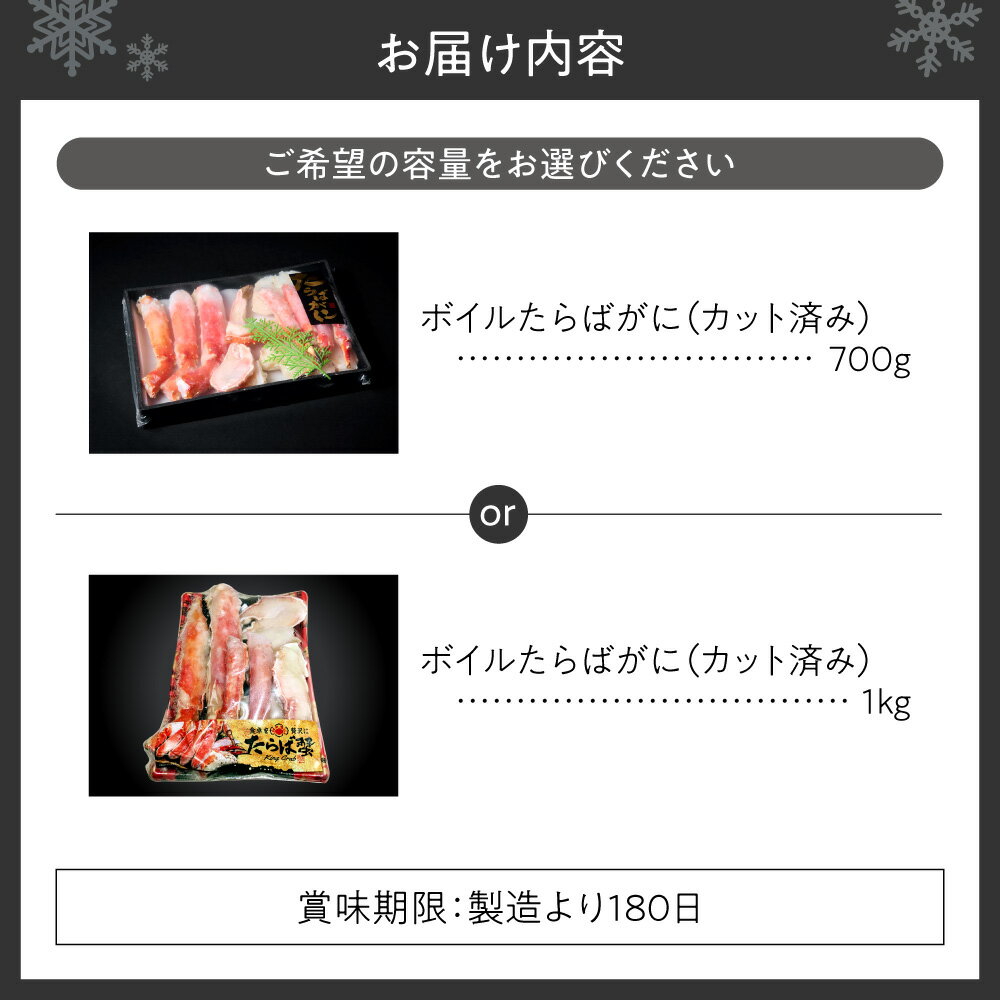 - 【ふるさと納税】 たらばがに ボイル カット済み 【 選べる 容量 】 700g 1kg ビードロカット 殻剥き不要 蟹 タラバガニ カニ脚 かにつめ 棒肉 海鮮 魚介類 ごはんのお供 おつまみ おかず お取り寄せ 冷凍 北海道 札幌市
