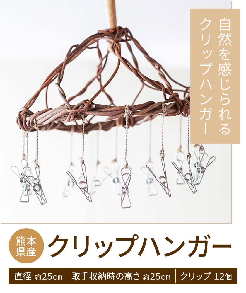 【ふるさと納税】熊本県産 クリップハンガー 直径 約25cm クリップ 12個 三日月と太陽《60日以内に出荷予定(土日祝除く)》熊本県 菊池市 手作り ハンドメイド ハンガー 壁掛け ナチュラル素材 かずら シュロ葉 天然木 使用 雑貨 日用品