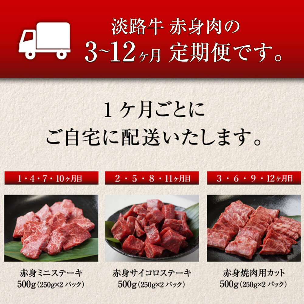 【ふるさと納税】【定期便3ヶ月~12ヶ月】淡路牛 赤身肉の定期便(赤身ミニステーキ・赤身サイコロステーキ・赤身焼肉用カット) 牛肉 赤身 冷凍 国産