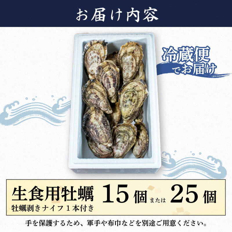 - 【ふるさと納税】 期間限定 選べる容量 牡蠣 15個 ~ 25個 カキ 生牡蠣 オイスター 今が旬 生食 殻付き ナイフ付き 産地直送 海鮮 海産物 魚貝類 新鮮 シングルシード 伊勢 志摩市 三重県 英虞湾産 シングルシードオイスター 「アマテラス」