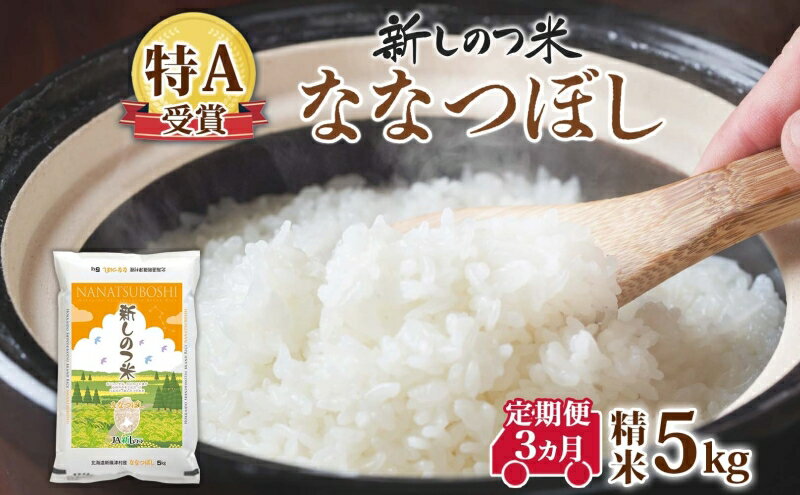 - 【ふるさと納税】北海道 定期便 3ヵ月 連続 全3回 R7年産 北海道産 ななつぼし5kg 精米 米 白米 ごはん お米 5キロ 特A 獲得 北海道米 ブランド米 道産 ご飯 お取り寄せ あっさり ふっくら お届け:入金確認後、翌月の中旬より出荷いたします。
