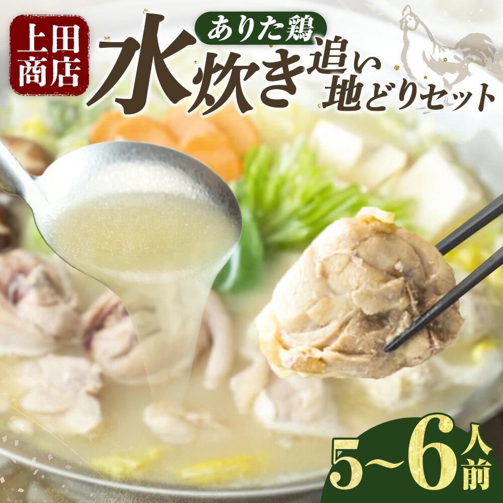- 【ふるさと納税】上田商店 ありた鶏水炊き(5~6人前) 追い地どりセット 水炊き 水たき 鶏鍋スープ やせうま風平麵 ありた鶏 博多地どり ぶつ切り 鶏肉 お肉 骨付きモモ もも肉 つみれ コラーゲン 冷凍 福岡県 糸田町 送料無料