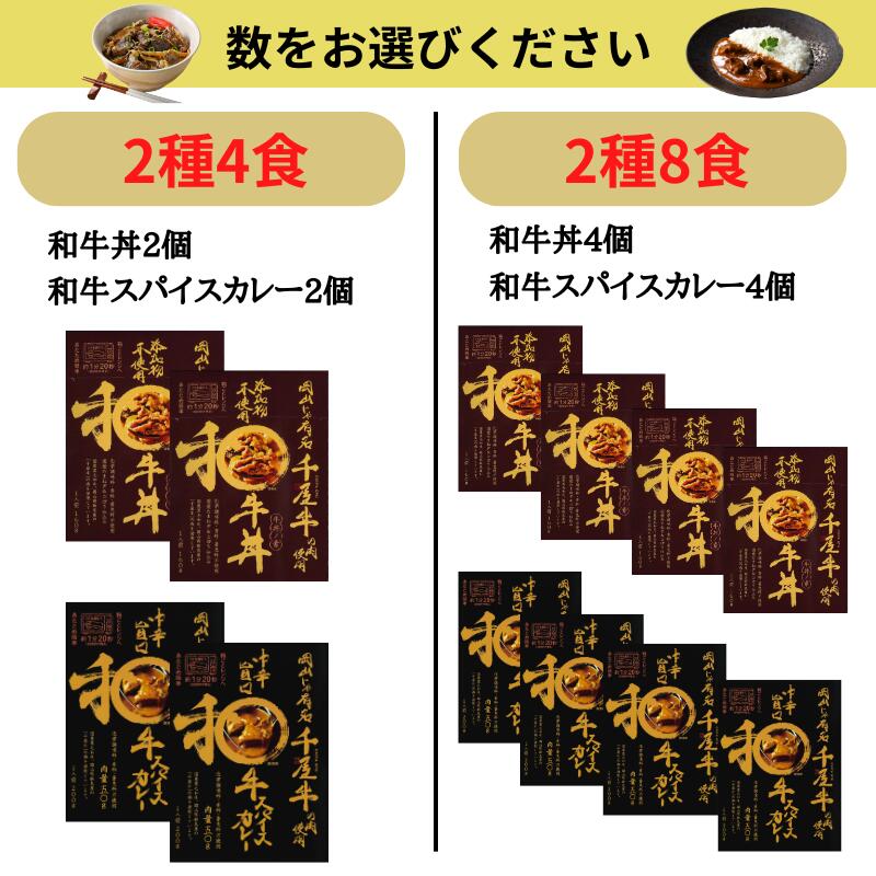 - 【ふるさと納税】レトルト 香料不使用 着色料不使用 牛丼 カレー 和牛丼 4食 8食 セット 千屋牛 和牛 黒毛和牛 電子レンジ対応 ギフト 贈答 レトルト食品 非常食 アウトドア キャンプ 手軽 簡単 A級食材 美味しい おすすめ 人気