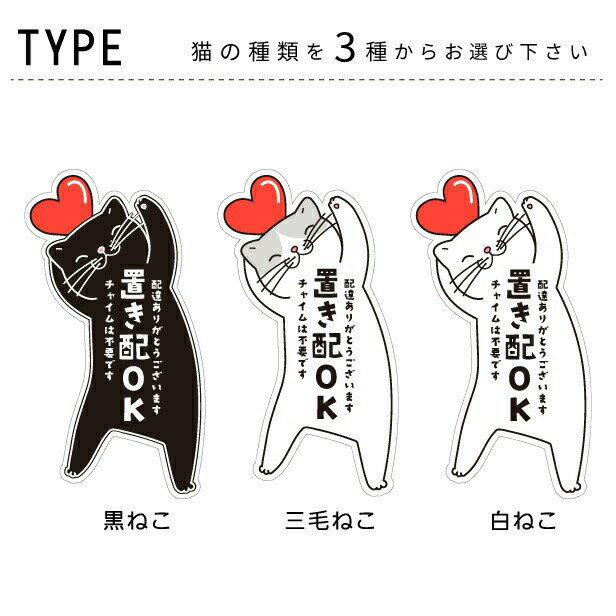- 【ふるさと納税】置き配 マグネット ステッカー 【猫 ねこ】ネコ ドア 置き配ボックス [置き配OK チャイムは不要です] 磁石 無地 シンプル かわいい おしゃれ 置配 置き配達 三毛猫 ミケ 屋外対応 簡単取付 メール便 送料無料